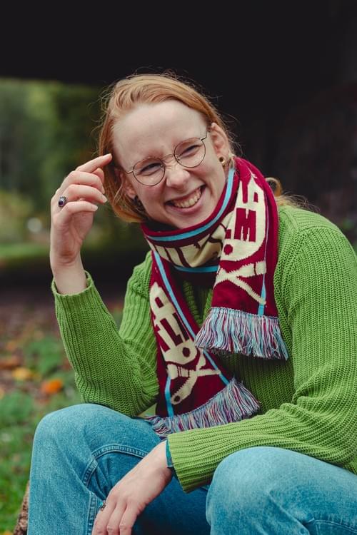 Support your local Living Museum met deze warme en stijlvolle dubbelzijdig gebreide sjaals (95 % acryl / 5 % elastaan) met aan een zijde de tekst THE LIVING MUSEUM en an de andere zijde IEDEREEN IS KUNSTENAAR.